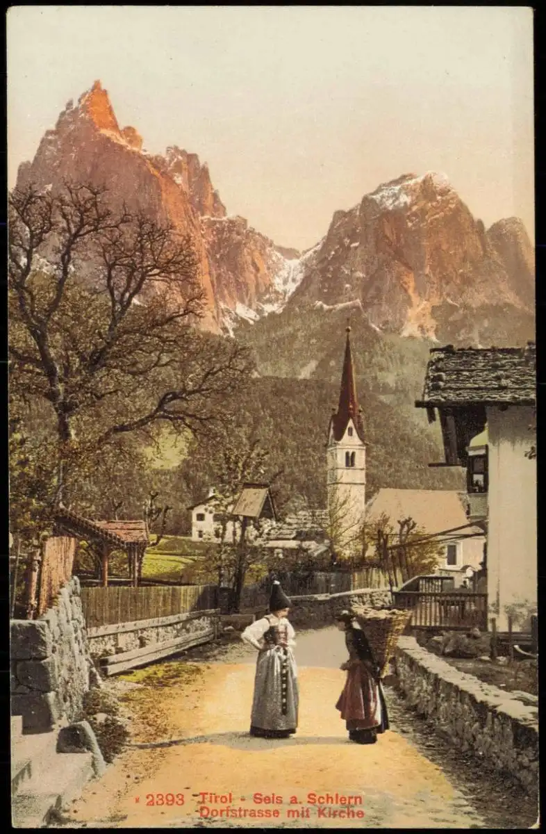 Cartoline Seis am Schlern Siusi allo Sciliar Dorfstrasse mif Kirche 1910
