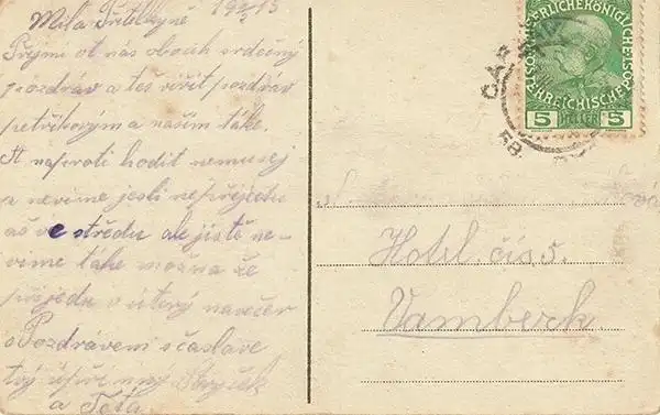 Bemerkungen: gelaufen 1915, Caslav - Vamberk.