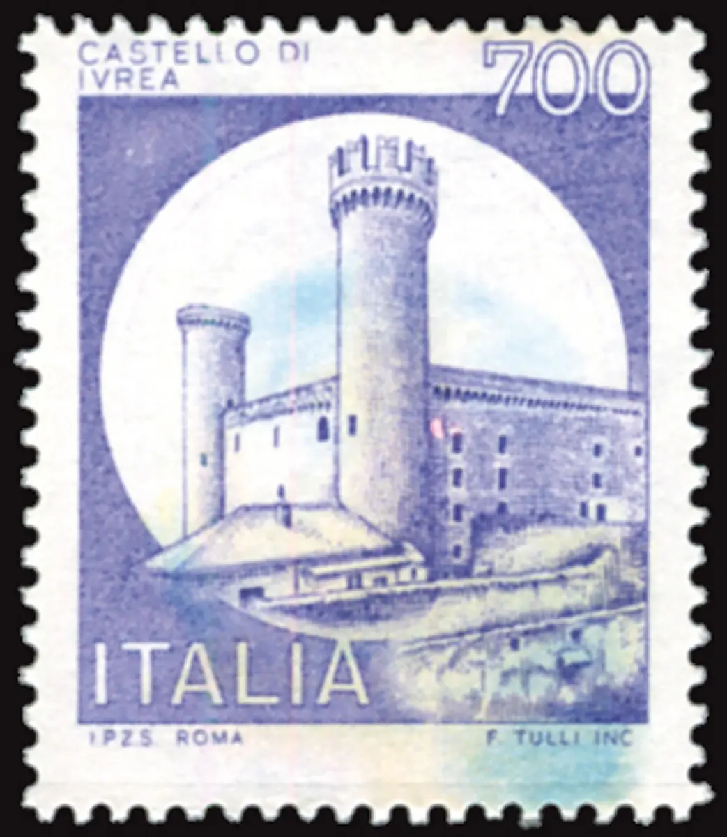 Castelli Lire 700 rote Sorte praktisch fehlt Vollgummi MNH - Castelli Lire 700 Nr. 1524 mit stark nach unten verschobenem Mittelfarbdruck und praktisch fehlendem Rot (stark verblassend) - Interessante nicht katalogisierte Sorte Cod. 642/16