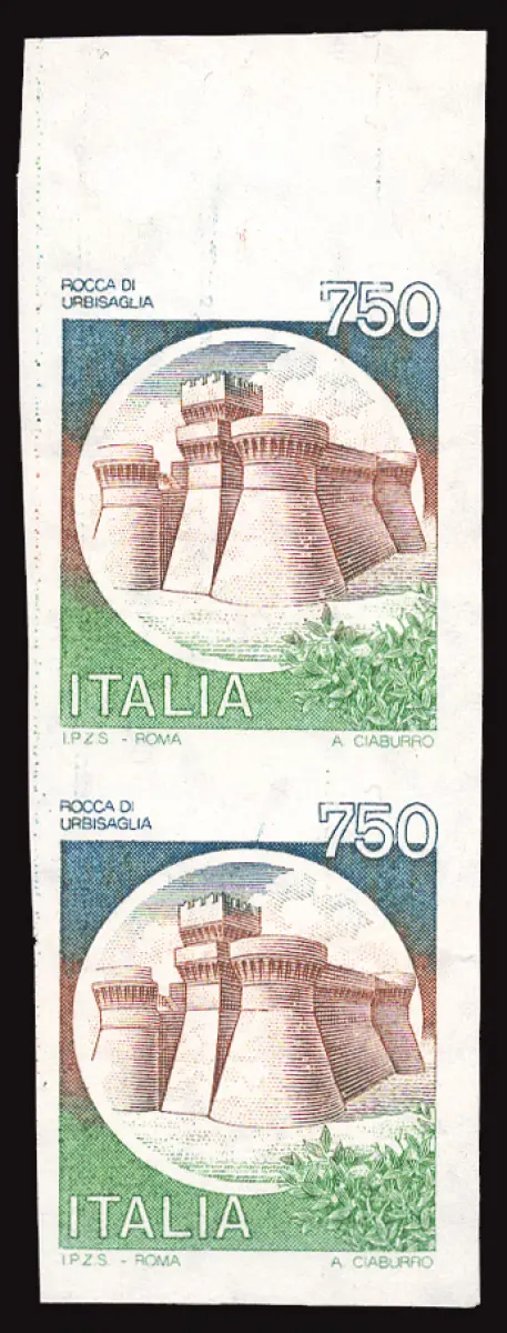MNH - Vollgummi - Castelli Lire 750 Nr. 1524A ungezahntes Vertikaldrehmoment b. von f. (Sass. spec. n. 1142A Ee) - Selten - Kat. euro 1.300 Cod. 867/17