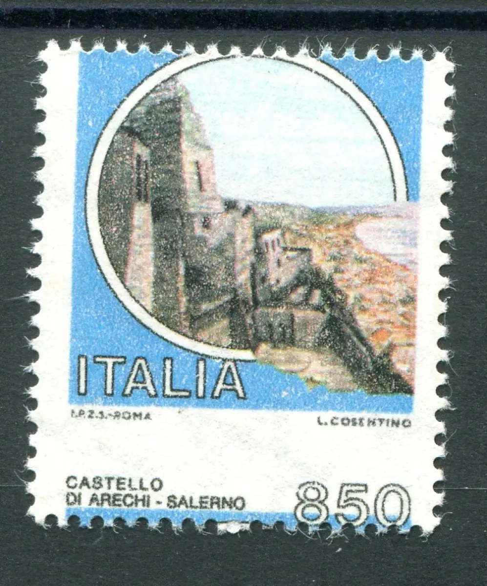 Castelli Lire 850 Sorte verschobene Verzahnung ** (MNH) - Castelli Lire 850 mit stark verschobener horizontaler Verzahnung, der Nennwert ist unten statt oben - ungewöhnlich Cod. 352/W