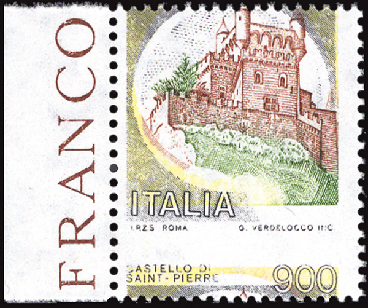 MNH - Vollgummi - - Castelli Lire 900 Nr. 1526 horizontale Verzahnung stark verschoben, so dass der Name des Schlosses und der Wert unten statt oben sind - Ungewöhnlich Cod.745/182