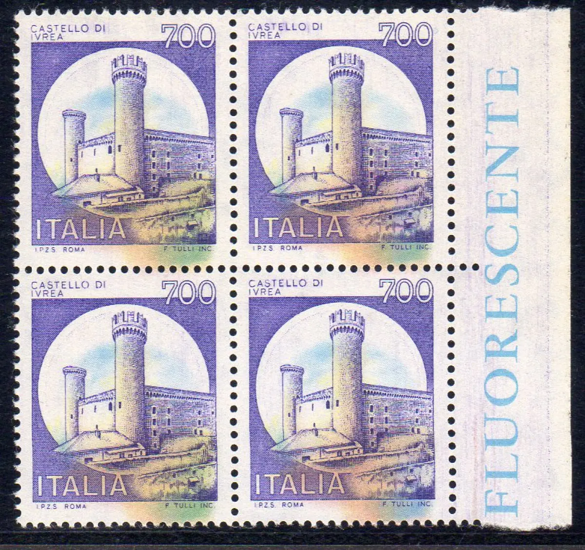 Castello Lire 700 Quartina Sorte Vollgummi MNH - Castello Lire 700 Nr. 1524 Quartina b. von f. mit schwachen und stark nach unten verschobenen Mittelfarben - Schön und ungewöhnlich Cod. 635/15