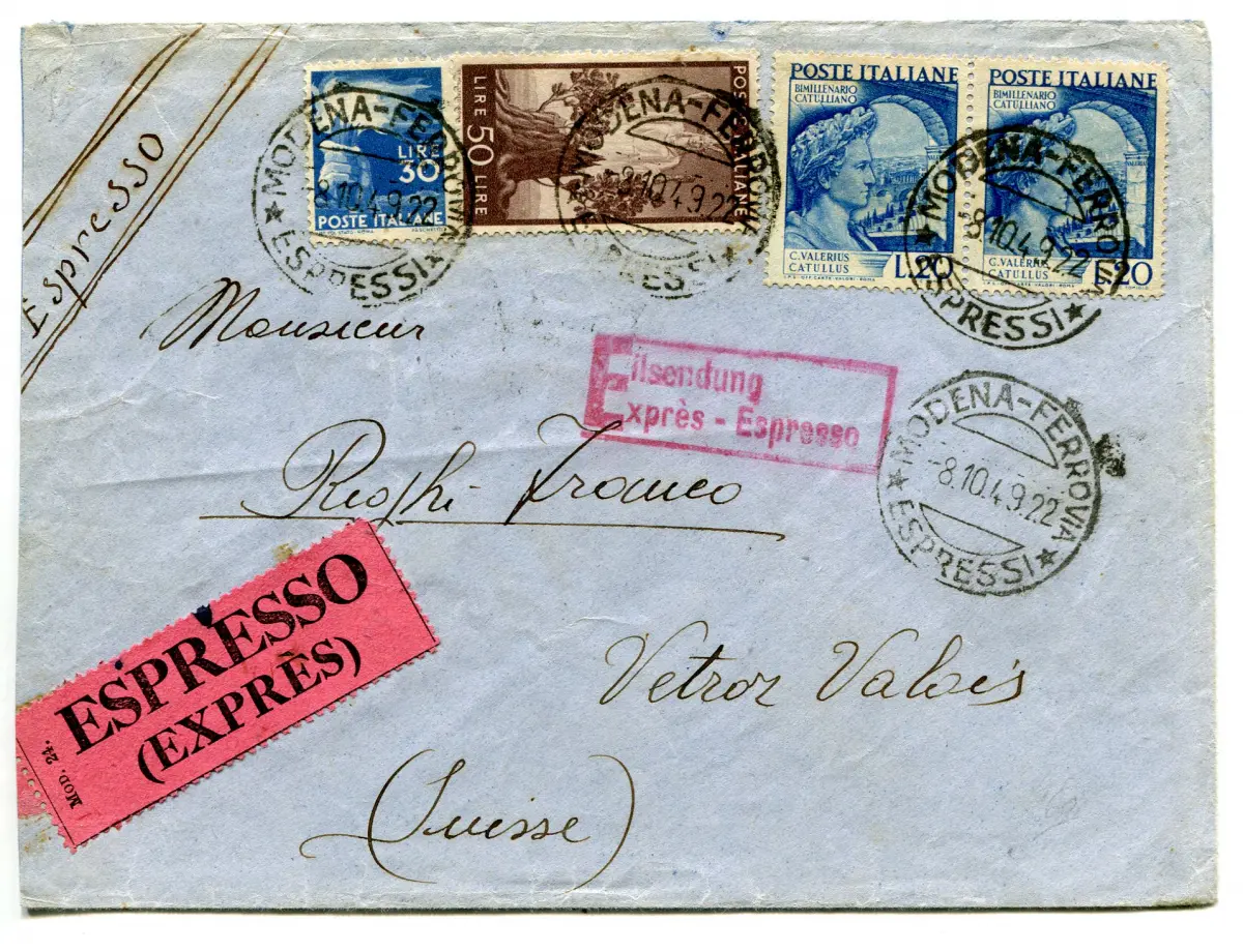 - Katull Nr. 614 Paar + Ergänzungen Nr. 563 + 564 auf Umschlag für Exp. für die Schweiz am 8.10.49 - im Tarif - Kat. Euro 150 n. 920/A