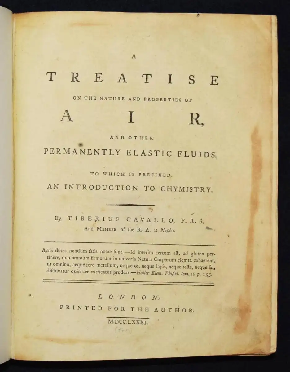 condition of inflammable and fixed air“ (DSB). – St. verso Titel,