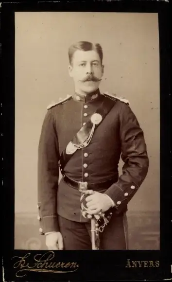 CdV Belgischer Soldat, Uniform, Standportrait, Degen