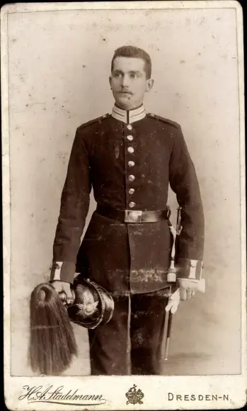 CdV Deutscher Offizier in Uniform, Paradehelm, Portrait