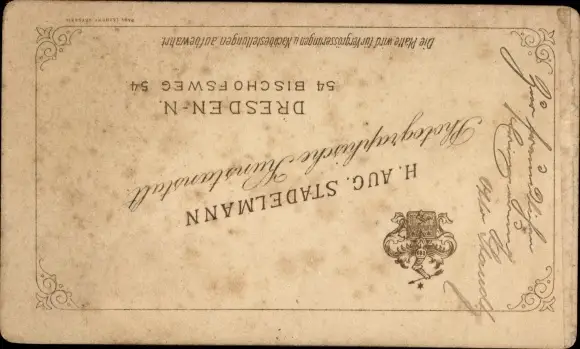 Zustand, siehe Scan, ungelaufen- Fotograf H. Aug. Stadelmann, Dresden - ca 6 cm X 11 cm