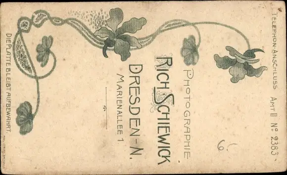 Zustand, siehe Scan, ungelaufen- Fotograf Rich. Schiewick, Dresden Neustadt - ca 6 cm X 11 cm