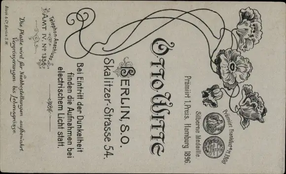 Zustand, siehe Scan, ungelaufen- Fotograf Otto Witte, Berlin Kreuzberg - ca 6 cm X 11 cm
