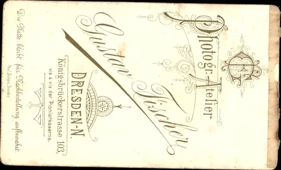 Zustand, siehe Scan, ungelaufen- Fotograf Gustav Fischer, Dresden Neustadt - ca 6 cm X 11 cm