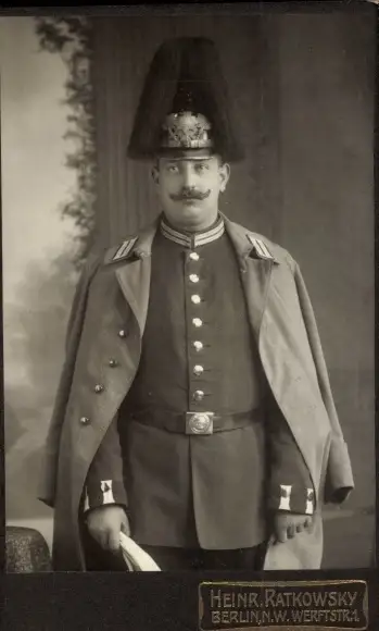 CdV Deutscher Offizier in Uniform, Portrait, Paradehelm, Mantel