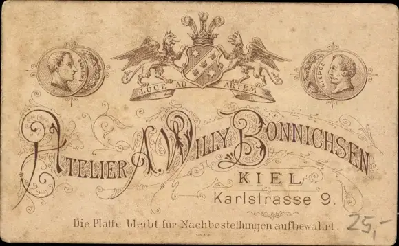 Zustand, siehe Scan, ungelaufen- Fotograf Atelier A. Willy Bonnichsen, Kiel, Karlstraße 9 - ca 7 cm X 11 cm