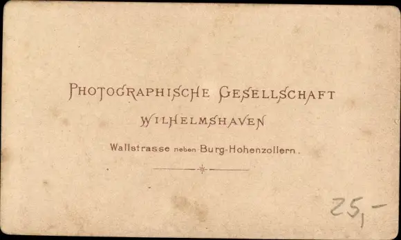 Zustand, siehe Scan, ungelaufen- Fotograf Photographische Gesellschaft Wilhelmshaven - ca 6 cm X 11 cm