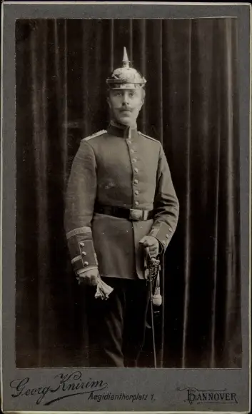 CdV Deutscher Soldat in Uniform, Pickelhaube, Portrait