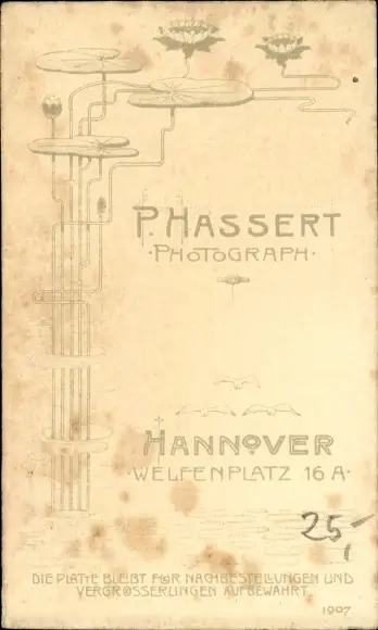 Zustand, siehe Scan, ungelaufen- Fotograf Paul Hassert, Hannover - ca 6 cm X 11 cm