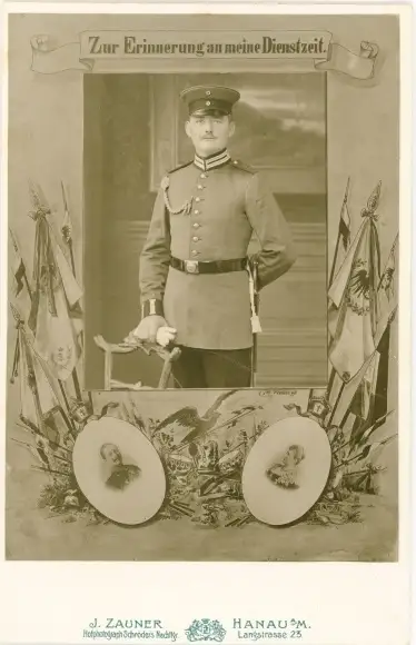 CdV Deutscher Soldat in Uniform, Portrait, Kaiserpaar, Fahnen