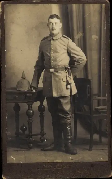 CdV Deutscher Soldat in Uniform, Portrait, Pickelhaube