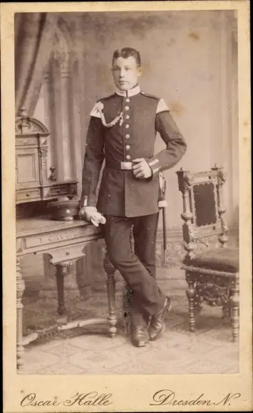 CdV Deutscher Soldat in Uniform, Standportrait, Schützenschnur