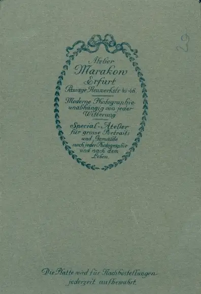 Zustand, siehe Scan, ungelaufen- Fotograf Atelier Marakow, Passage Neuwerkstraße 45-46 - ca 8 cm X 12 cm