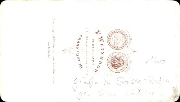 CdV Gräfin zu Stolberg-Roßla, Prinzessin zu Solms-Rödelheim, Portrait