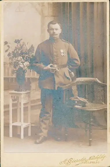 CdV Ingolstadt, Deutscher Soldat in Uniform, Standportrait, Eisernes Kreuz, Zigarette