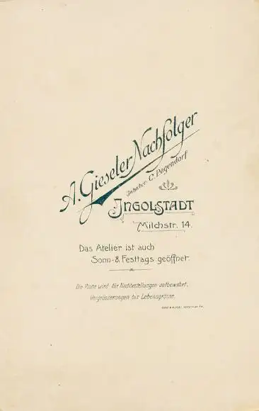Zustand, siehe Scan, ungelaufen- Fotograf A. Gieseler Nachfolger, Milchstraße 14, Inh. C. Pegendorf - ca 4 cm X 5 cm