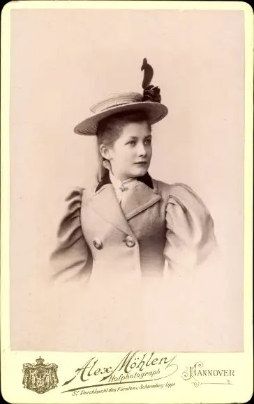 CdV Junge Frau mit Hut und Mantel, Portrait