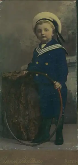 CdV Junge im Matrosenanzug mit Reifen, Portrait