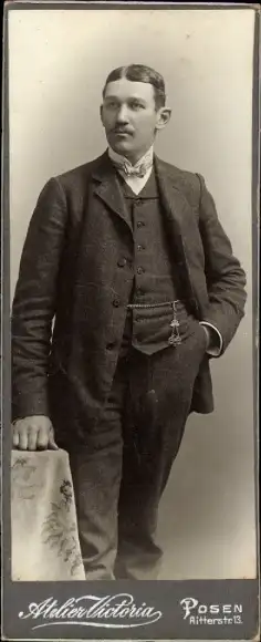Zustand, siehe Scan- Fotograf Atelier Victoria, Posen, Ritterstraße 13 - ca 5 cm X 12 cm