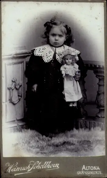CdV Kinderportrait, Kleines Mädchen mit Puppe