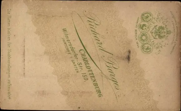 Zustand, siehe Scan, ungelaufen- Fotograf Richard Barges, Charlottenburg, Wilmersdorfer Str. 150 - ca 6 cm X 11 cm