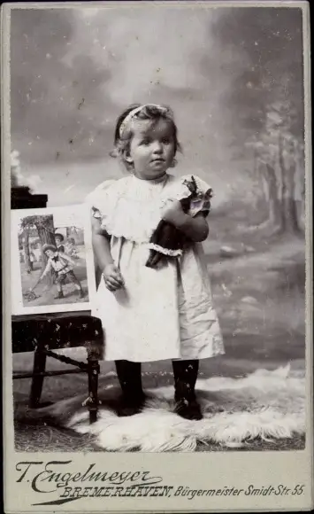 CdV Kinderportrait, kleines Mädchen mit Puppe