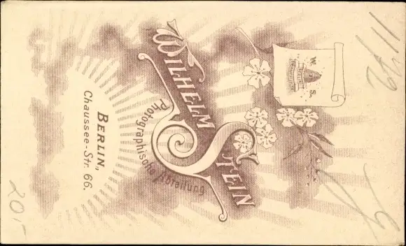 Zustand, siehe Scan, ungelaufen- Fotograf Wilhelm Stein, Berlin, Chausseestraße 66 - ca 6 cm X 11 cm