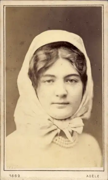 CdV Portrait, Bildnis einer jungen Frau, Kopftuch, 1869