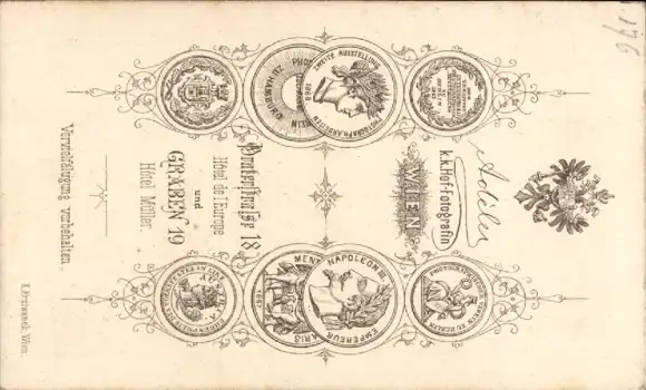 Zustand siehe Scan, ungelaufen- Fotograf Adele, Wien, Praterstraße 18, Hotel de l'Europe, Graben 19, Hotel Müller - ca 6 cm X 11 cm