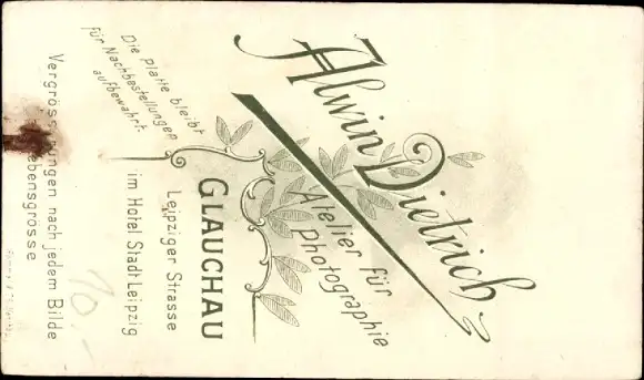 Zustand, siehe Scan, ungelaufen- Fotograf Alwin Dietrich, Glauchau, Waldenburg - ca 6 cm X 11 cm