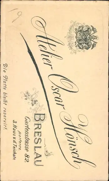 Zustand siehe Scan, ungelaufen- Fotograf Oscar Hönsch, Breslau, Gartenstraße 82 - ca 6 cm X 11 cm