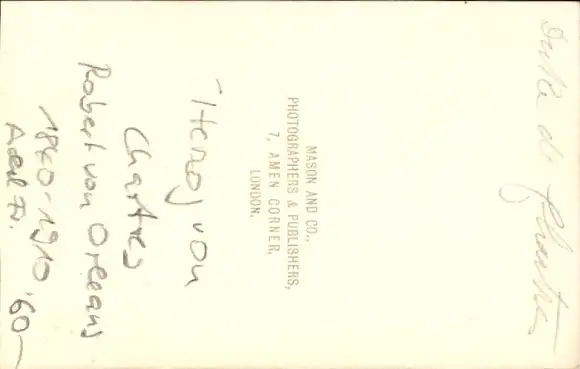 Zustand, siehe Scan, ungelaufen- Fotograf Mason and Co. London - ca 6 cm X 10 cm