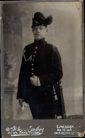 CdV Soldat, Kaiserreich, Uniform, Standportrait, Schützenschnur, Dresden