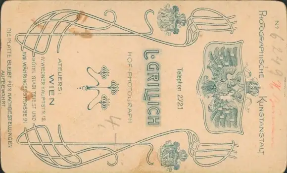 Zustand, siehe Scan, ungelaufen- Fotograf L. Grillich, Wiedner Hauptstraße 12 - ca 6 cm X 11 cm