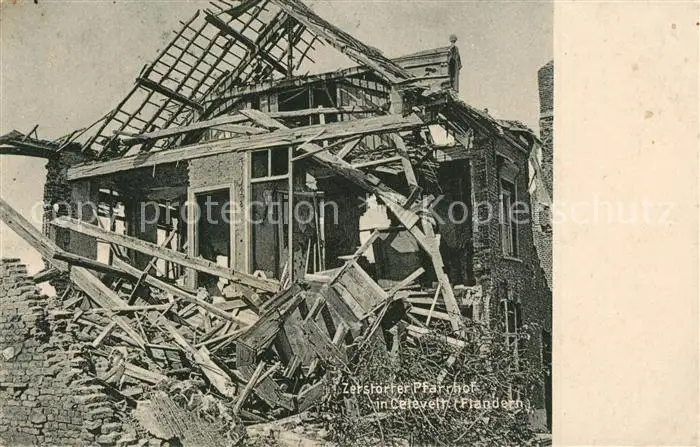 Celevelt zerst?rter Pfarrhof Celevelt postalisch gelaufen 1916 Feldpost - Stempel Erhaltung siehe scans [LiesaD40] Feldpost - Stempel LiesID40