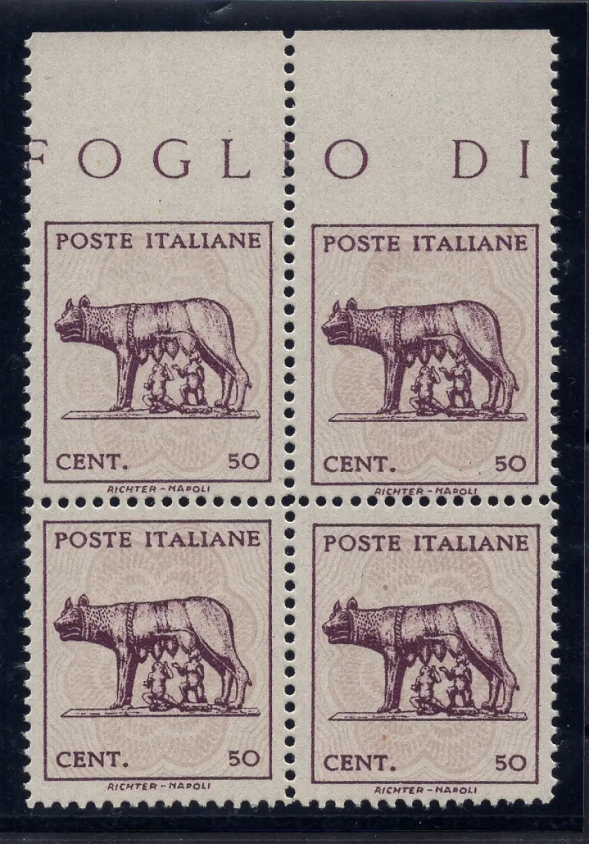 MH - Linguellato - Lupa Capitolina Cent. 50 n. 515At filigranes Viertel mit zwei ungezahnten Exemplaren oben b. von f. integral - neu einwandfrei - Kat. euro 260 Cod. 2848/WEB