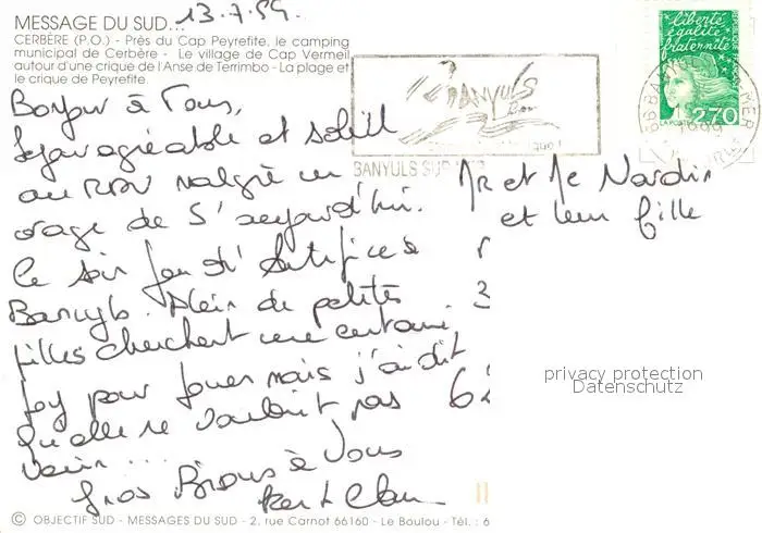 Cerbere Panorama Village de Cap Vermeil Plage et crique de Peyrefite Cerbere postalisch gelaufen 1999 Erhaltung siehe scans [FriedD77] Frierer