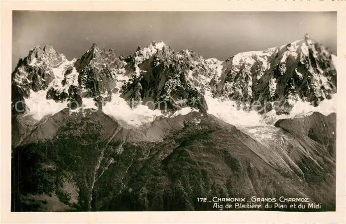 Chamonix Grands Charmoz Aig de Blaitière du Plan et du Midi Gebirgspanorama Alpen Chamonix postalisch nicht gelaufen 1921-1965 Erhaltung siehe scans [FriedD77] Frierer