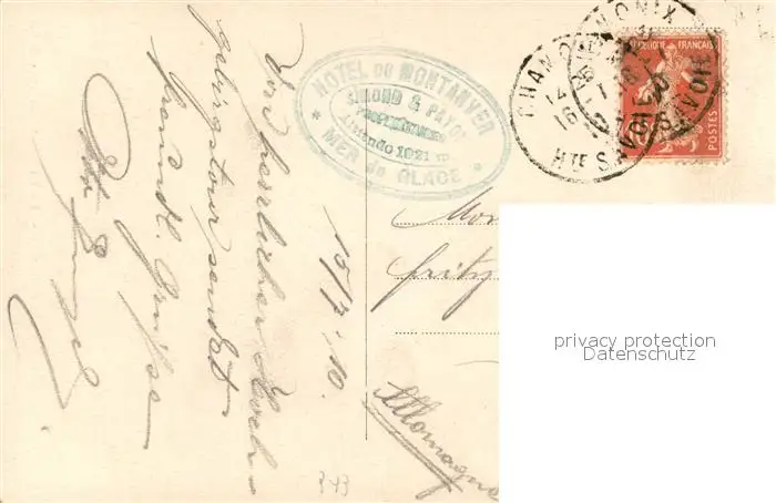 Chamonix La Mer de Glace le Grepon Chamonix postalisch gelaufen 1910 Erhaltung siehe scans [KathaD81] Kathoren