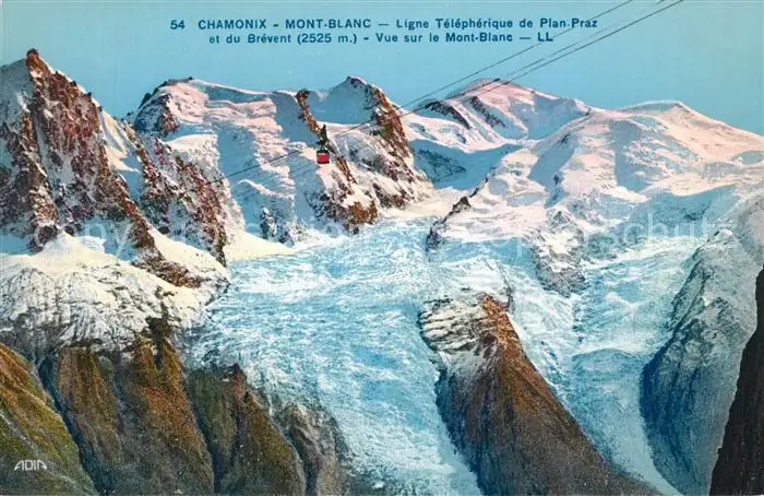Chamonix Ligne Téléphérique de Plan Pratz et du Brévent vue sur l Mont Blanc Chamonix postalisch nicht gelaufen 1921-1965 Erhaltung siehe scans [FriedD77] Frierer