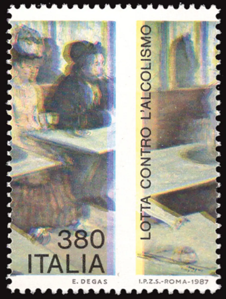 MNH - Vollgummi - Lot alkoholismo Lire 380 Nr. 1806a stark waagerecht verschobene vertikale Verzahnung - Ungewöhnlich - Kat. euro 500 Cod. 890/17