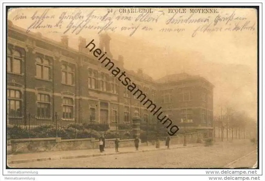 Charleroi - Ecole Moyenne - Ecken bestossen - Feldpost (E5240) gel. 1914