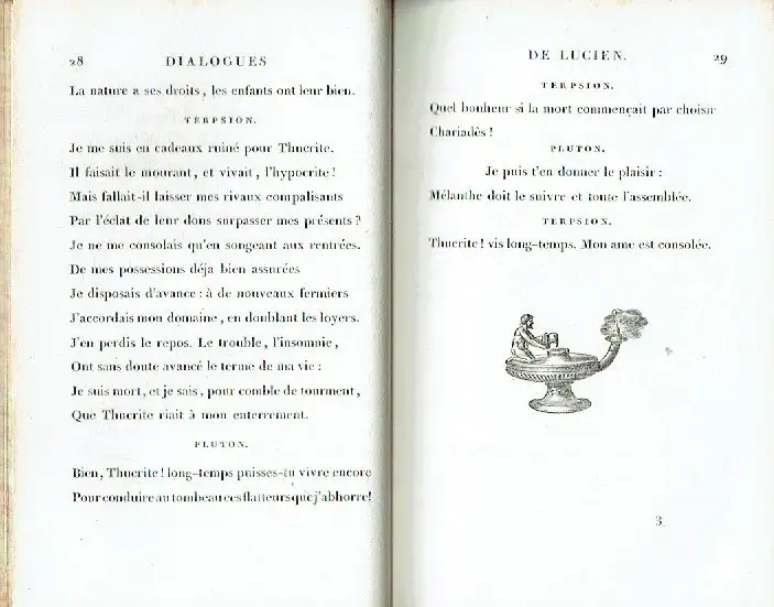 guter bis sehr guter Zustand, geringe Gebrauchs- und Alterungsspuren: Einbandecken und -kanten tils gering abgenutzt - Leder in der oberen Ecke des Deckelrückens etwas durchgewetzt - Setenschnitt leicht gebräunt - Seiten sauber und ordentlich, selten geringfügig fleckig, Charles Hubert Millevoye (* 24. Dezember 1782 in Abbeville; † 26. August 1816) war ein französischer Dichter. Charles Hubert Millevoye studierte die Rechte, wurde aber dann Buchhändler und hat sich durch zahlreiche klassizistisch-romantische Dichtungen, von denen mehrere akademische Preise davontrugen, bekannt gemacht. Er starb am 26. August 1816 an der Auszehrung. Weiterhin schrieb Millevoye Übersetzungen aus Homer, Vergil und Lucian und Tragödien. Die erste Ausgabe seiner Werke besorgte er selbst (1814–16, 5 Bände); spätere Ausgaben erschienen 1822, 4 Bände, und 1833, 2 Bände (Wikipedia) - Dialogues des Morts - Fragments - Epigrammes, Halbleder, ca. 10 x 14,5, 332 Seiten mit 1 Bildnis des Dichters